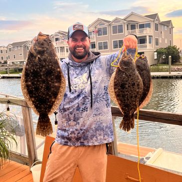 We use the latest fishing techniques and technology using our 112-HP thrust trolling motor to fight the winds going for flounder or anchor up for Tog. We know the tricks and the spots to get those fish on your line and send you home with dinner and some great memories.